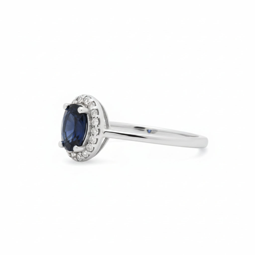 Anillo De Piedra Natural Ovalado Zafiro Con Circonia