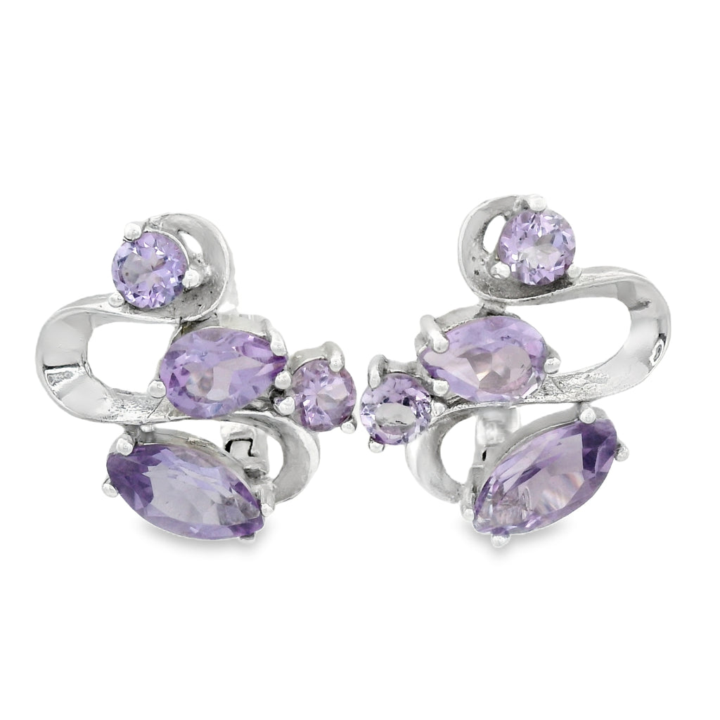 Aretes de nuestro material característico , plata .925 y un elaborado trabajo en la plata, con sus piedras naturales titanita y amatista la hace una pieza única.