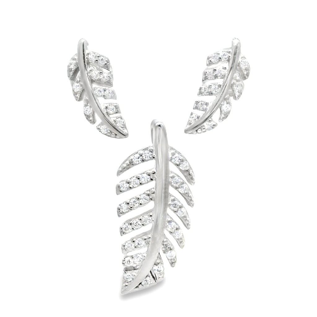 Juego Hojas De Plata Con Circonia